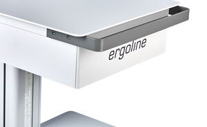 Alle Schubladen der ergocar Serie verfügen über einen selbstschließenden Soft-Einzug. Für Anwendungen mit kabelgebundenen Sonden (z.B. CTG) ist eine Variante mit einem Kabeldurchlass oberhalb der Frontblende erhältlich – ein Quetschen der Sondenkabel beim Schließen der Schublade ist damit ausgeschlossen.