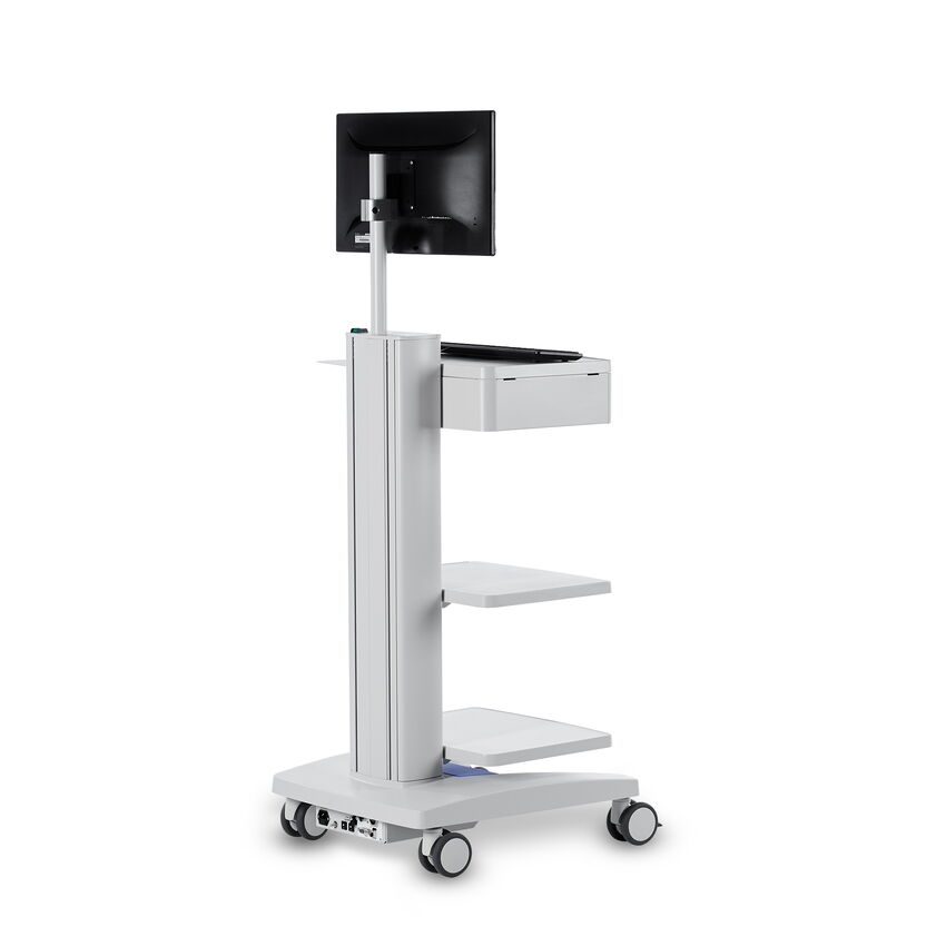 A universal bracket on the outside of the equipment cart column enables the secure attachment of desktop PCs.