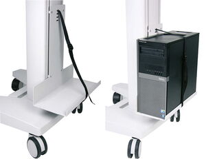 Die Halterung ermöglicht die Anbringung eines PC mit sogenanntem SFF-Gehäuse (small form factor) oder einer DT 80/100 Pumpe direkt unterhalb eines Ablagebodens. Für größere Rechner (Desktop-Gehäuse) ist eine Halterung an der Außenseite der Zentralsäule erhältlich.