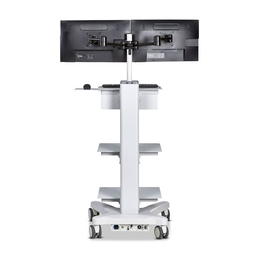 Medizinische Trenntransformatoren zur Reduktion der Ableitströme sind in verschiedenen Leistungen erhältlich und werden platzsparend in der Gerätewagenbasis untergebracht. Zusätzlich können Verlängerungen für RS232, USB und LAN vom Datenkabel-Kanal zur Rückseite des Trenntransformator-Gehäuses geführt werden.