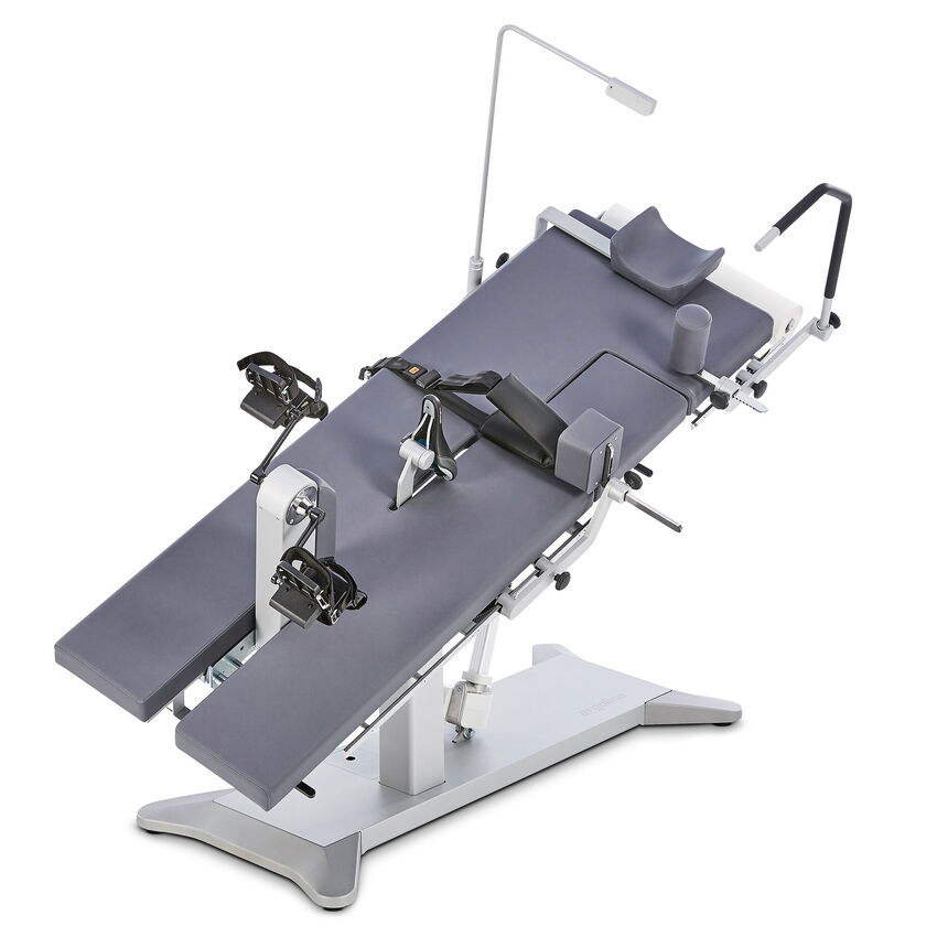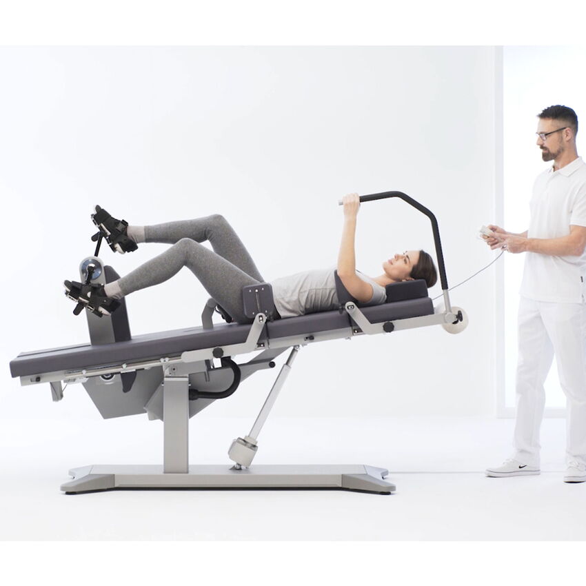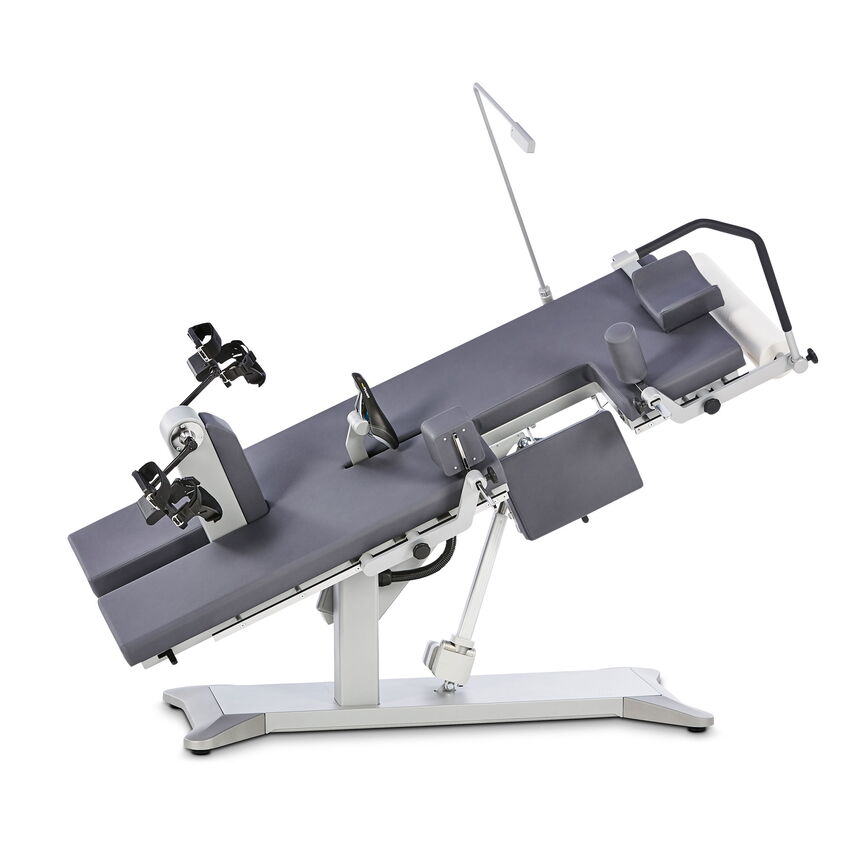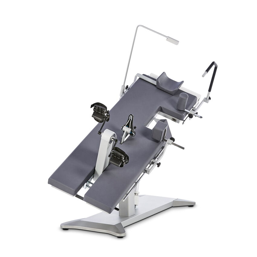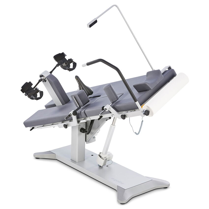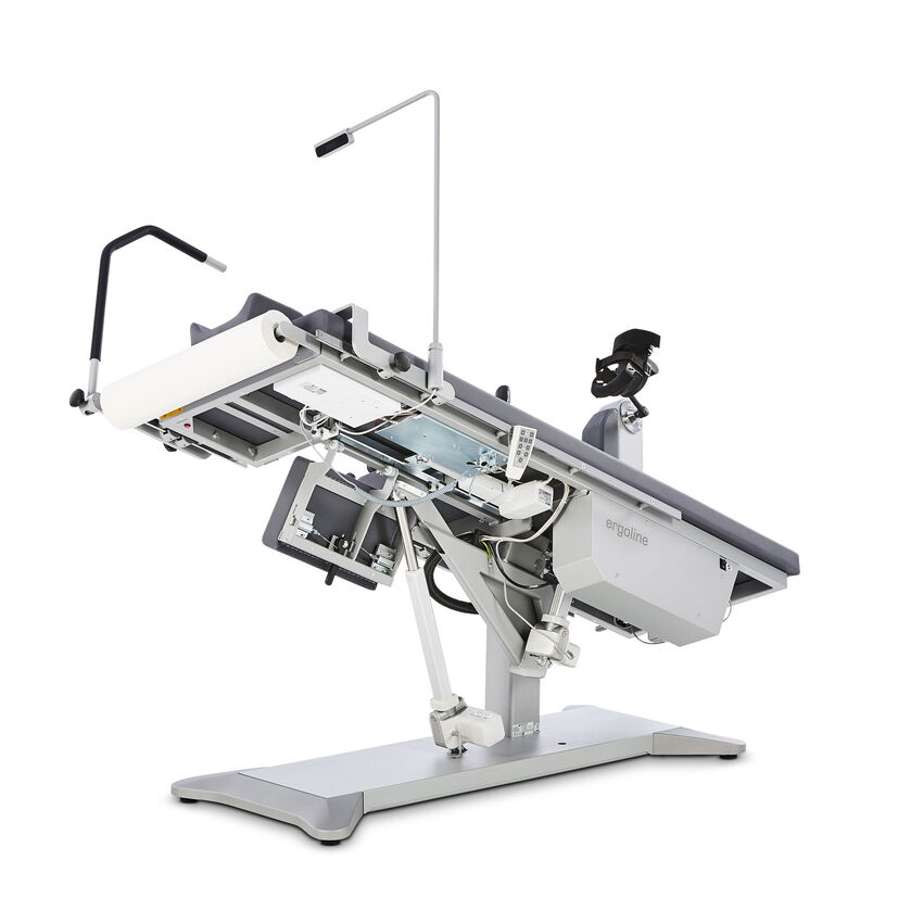 Komfortabel wird die Untersuchungsposition und die Position des Sattels über eine Fernbedienung mit Mehrfach-Positionsspeicher eingestellt, auf Wunsch auch kabellos über Funk. Voneinander unabhängige Schwenkbereiche für beide Motoren vereinfachen das Anfahren jeder beliebigen Liegenposition.
