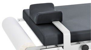 Durch das einfach abklappbare Polsterelement wird die Ultraschalluntersuchung auch in Seitenlage des Patienten wesentlich vereinfacht.