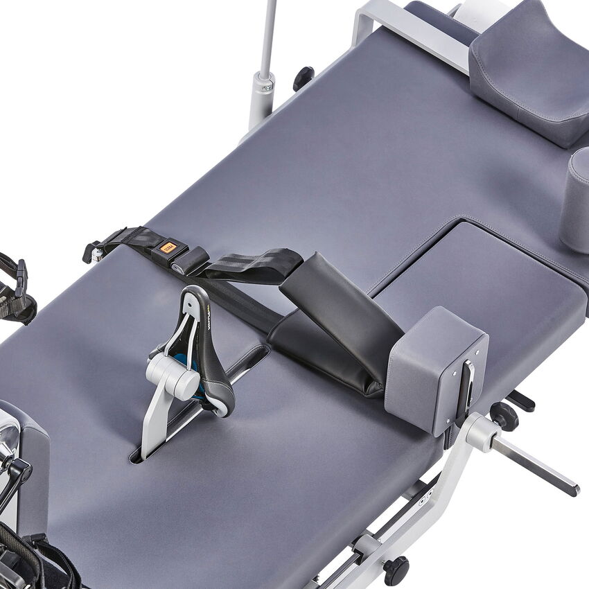 Der Sattel kann einfach nach oben abgezogen werden – in der Liegefläche bleiben keine störenden Schienen oder Befestigungselemente stehen. Unterschiedliche Sattel-Adapter ermöglichen die Anpassung auch an besondere Patientengrößen.