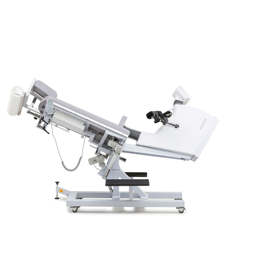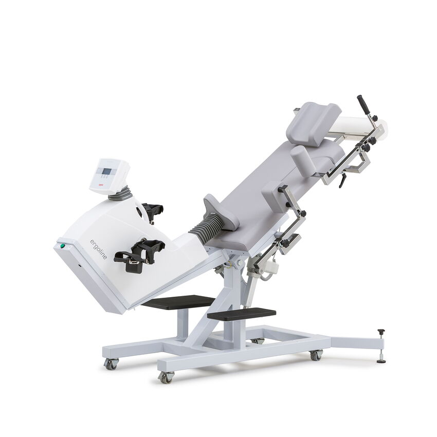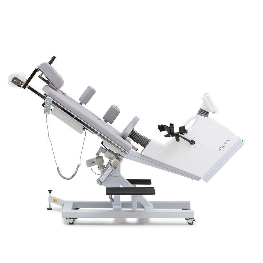 Das Stressecho-Liegeergometer kann beidseitig mit abnehmbaren Beinauflagen ausgestattet werden und ist damit auch für Zwischenuntersuchungen geeignet.