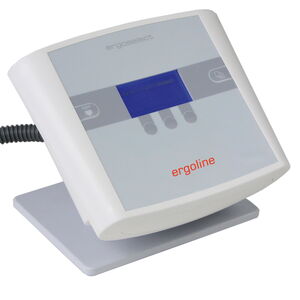 Alle wichtigen Informationen auf einen Blick. Das LC-Display besticht durch seine gute Ablesbarkeit. Neben der Ansteuerung durch PC-EKG oder EKG-Schreiber ermöglicht die intuitive Bedienung auch die Durchführung eigenständiger Ergometrie-Programme oder eine manuelle Einstellung der Belastung. Alternativ zur fest montierten Bedieneinheit ist auch eine abgesetzte Version mit Tischstativ verfügbar.