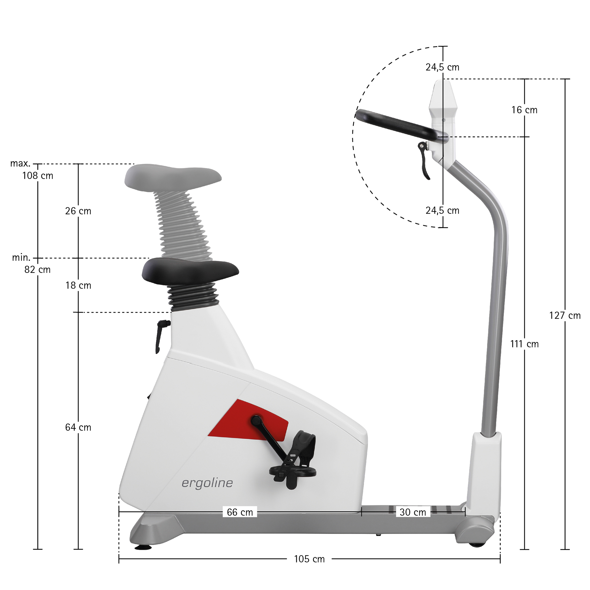 Komfortable Alternativen zur mechanischen Einstellung der Sattelhöhe: Eine stufenlose Einstellung über Gasdruckfeder ist ebenso möglich wie die elektrische Sitzhöhenverstellung mit Motor, mit der gerade älteren oder gehbehinderten Patienten der für sie oft problematische Aufstieg auf das Ergometer erleichtert wird. Die Einstellung wird einfach über Tasten an der Bedieneinheit vorgenommen.