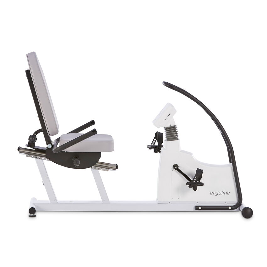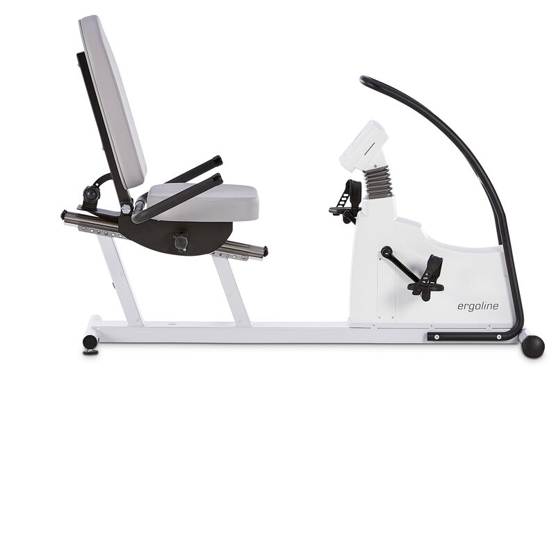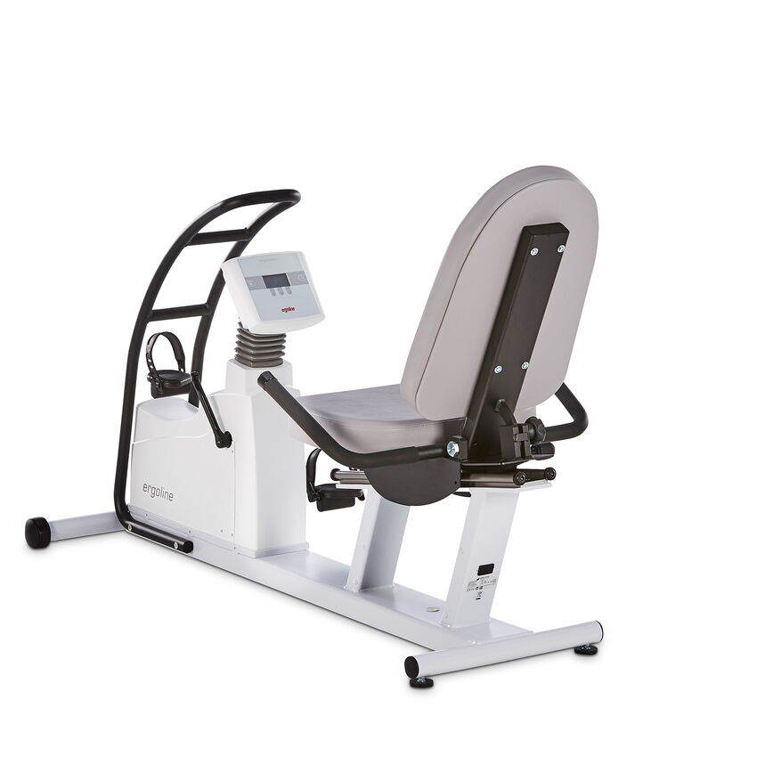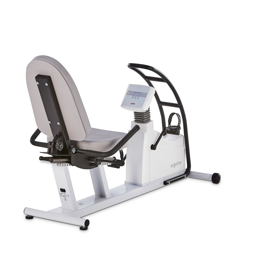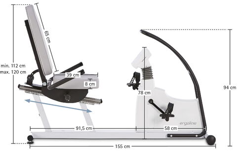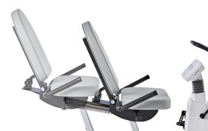 Die Sitzposition kann durch einfaches Anheben des Rasthebels in einem weiten Bereich – auch während des Sitzens – schnell und unkompliziert verstellt werden. Die hohe Rückenlehne entlastet ideal den Lenden- und Beckenbereich während des Trainings oder einer ergometrischen Untersuchung. Auch die Neigung der Rückenlehne lässt sich einstellen.
