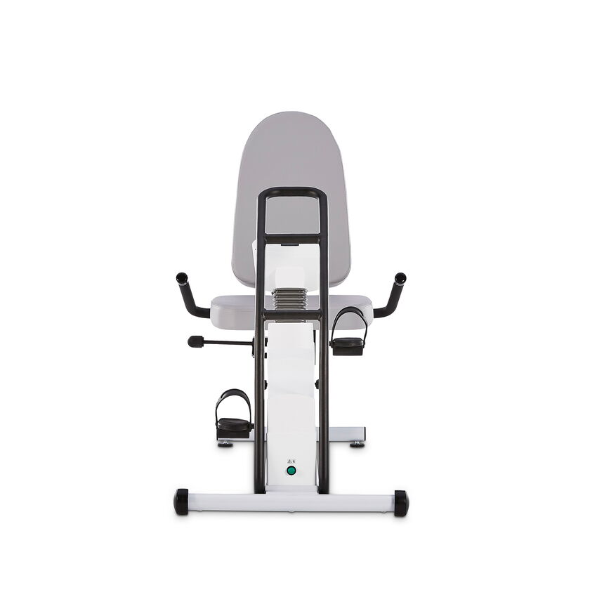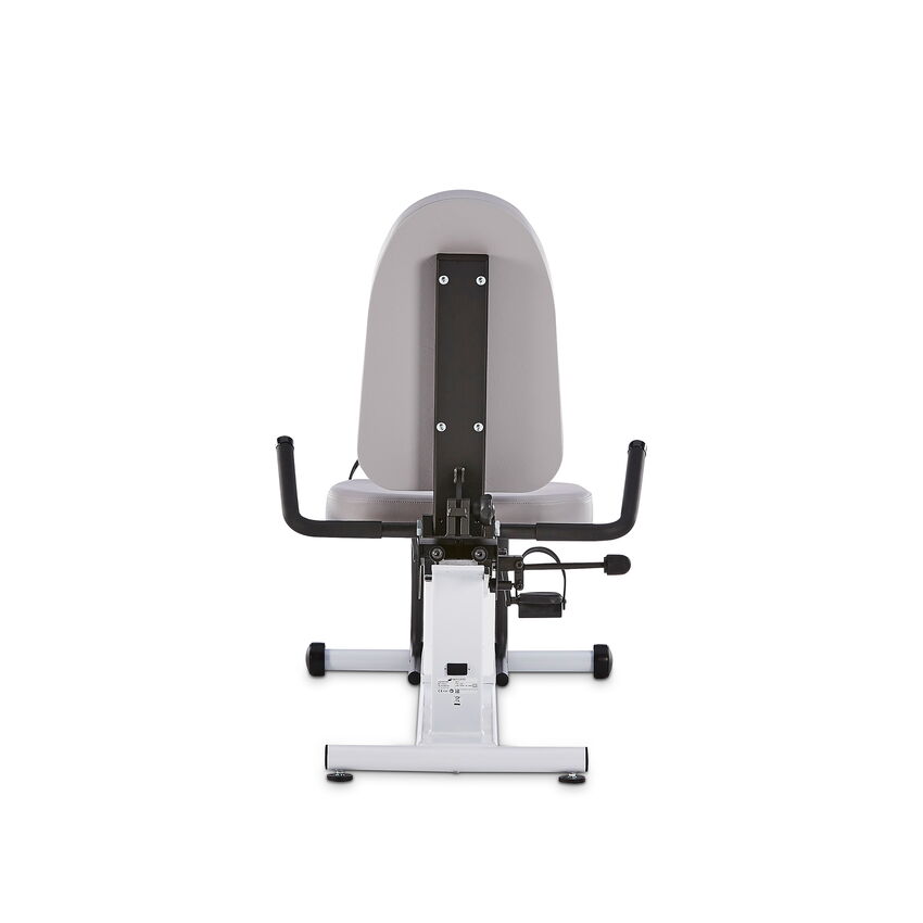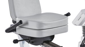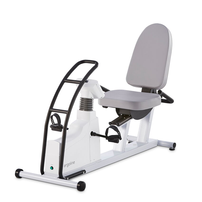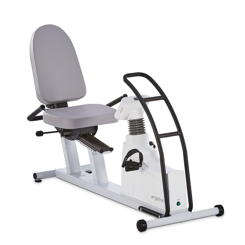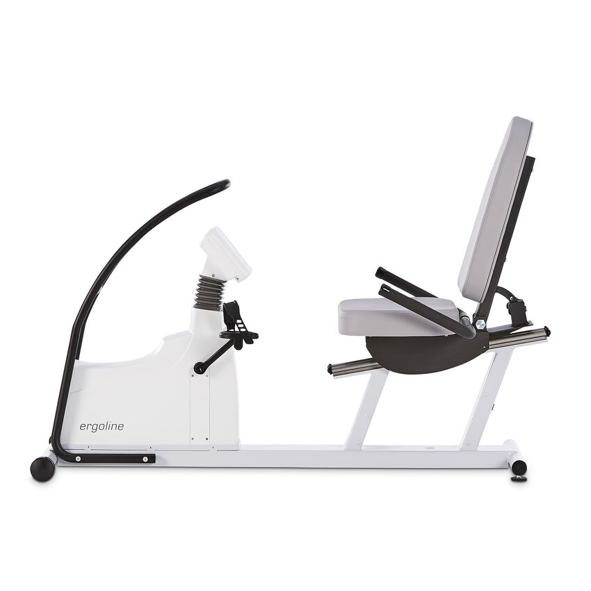 Die Sitzposition kann durch einfaches Anheben des Rasthebels in einem weiten Bereich – auch während des Sitzens – schnell und unkompliziert verstellt werden. Die hohe Rückenlehne entlastet ideal den Lenden- und Beckenbereich während des Trainings oder einer ergometrischen Untersuchung. Auch die Neigung der Rückenlehne lässt sich einstellen.