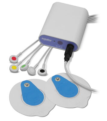 Der ergoline 2-Kanal EKG-Sender bietet erweiterte Möglichkeiten: Mit 5 Elektroden können 2 beliebig festzulegende, voneinander unabhängige EKG-Kanäle kontrolliert und aufgezeichnet werden.